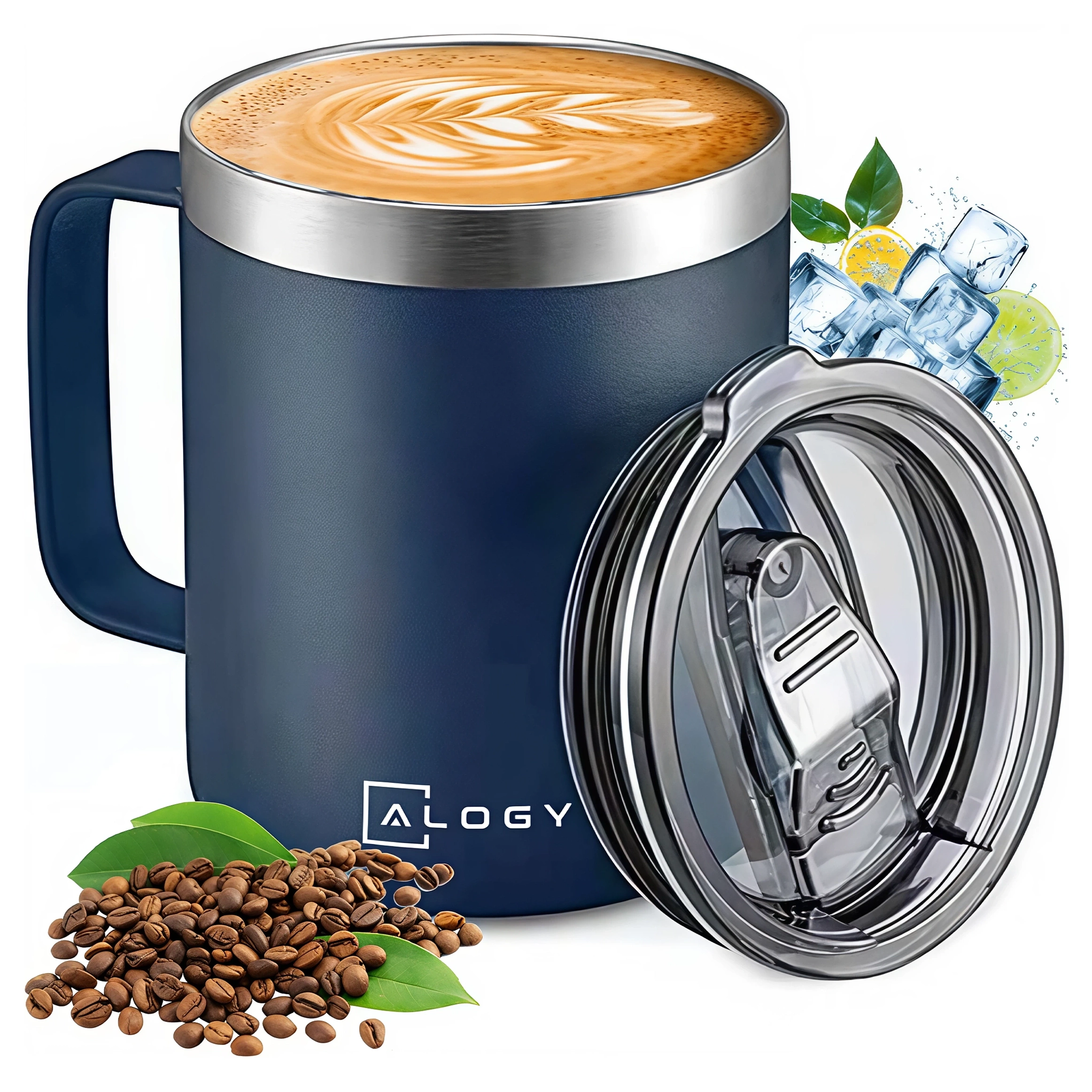 Kubek Termiczny Alogy 420 ml Granatowy – Stalowy, BPA FREE, 3h/8h, pokrywka z otworem