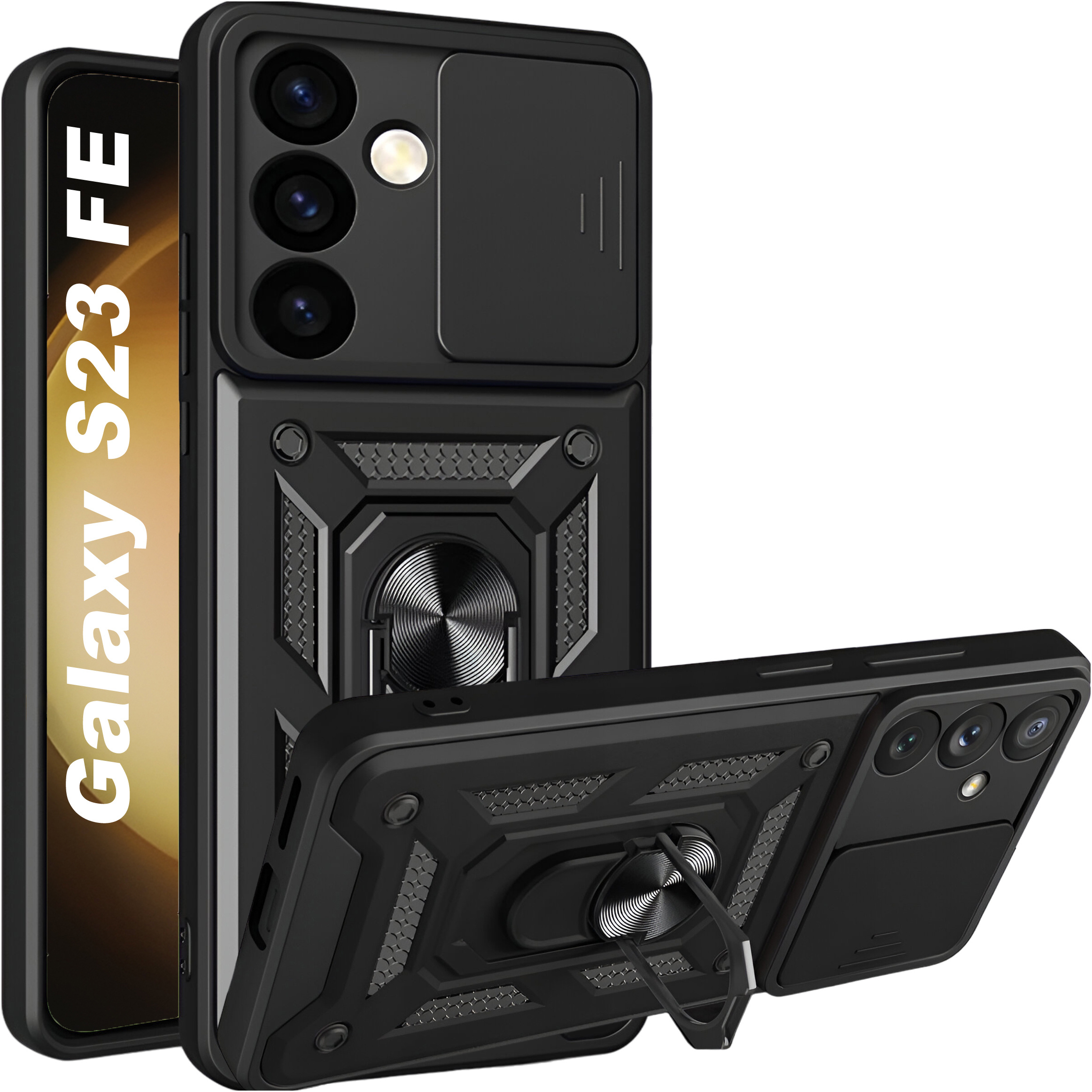 Etui pancerne do Samsung Galaxy S23 FE Camshield Case Ring Alogy Stand z osłonką na aparat slide czarne