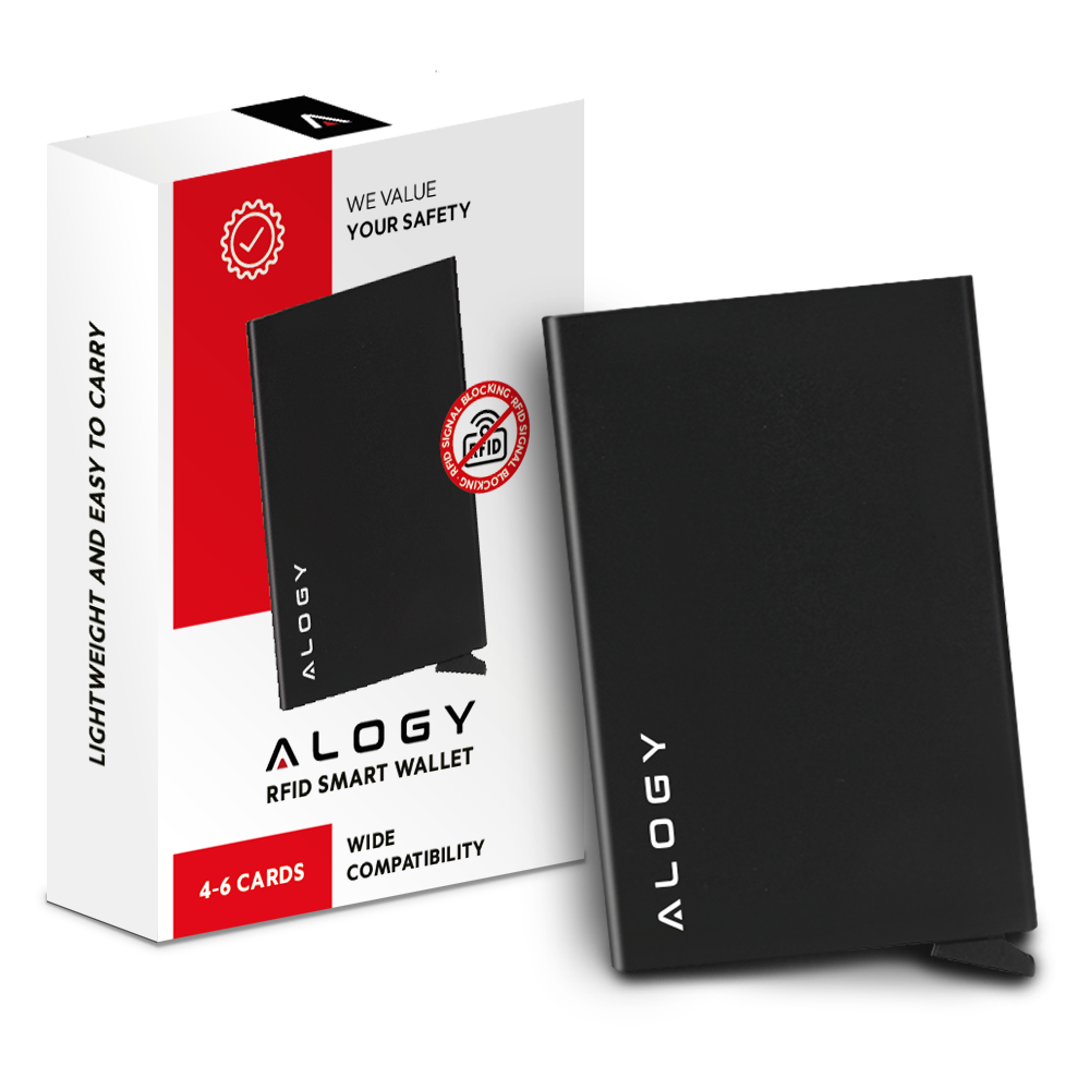 Alogy Portfel antykradzieżowy inteligentny RFID etui na karty wykonany został z wysokiej jakości aluminium oraz tytanu. Karty umieszczone wewnątrz są chronione przed nieautoryzowanym odczytem danych oraz przed złamaniem.
