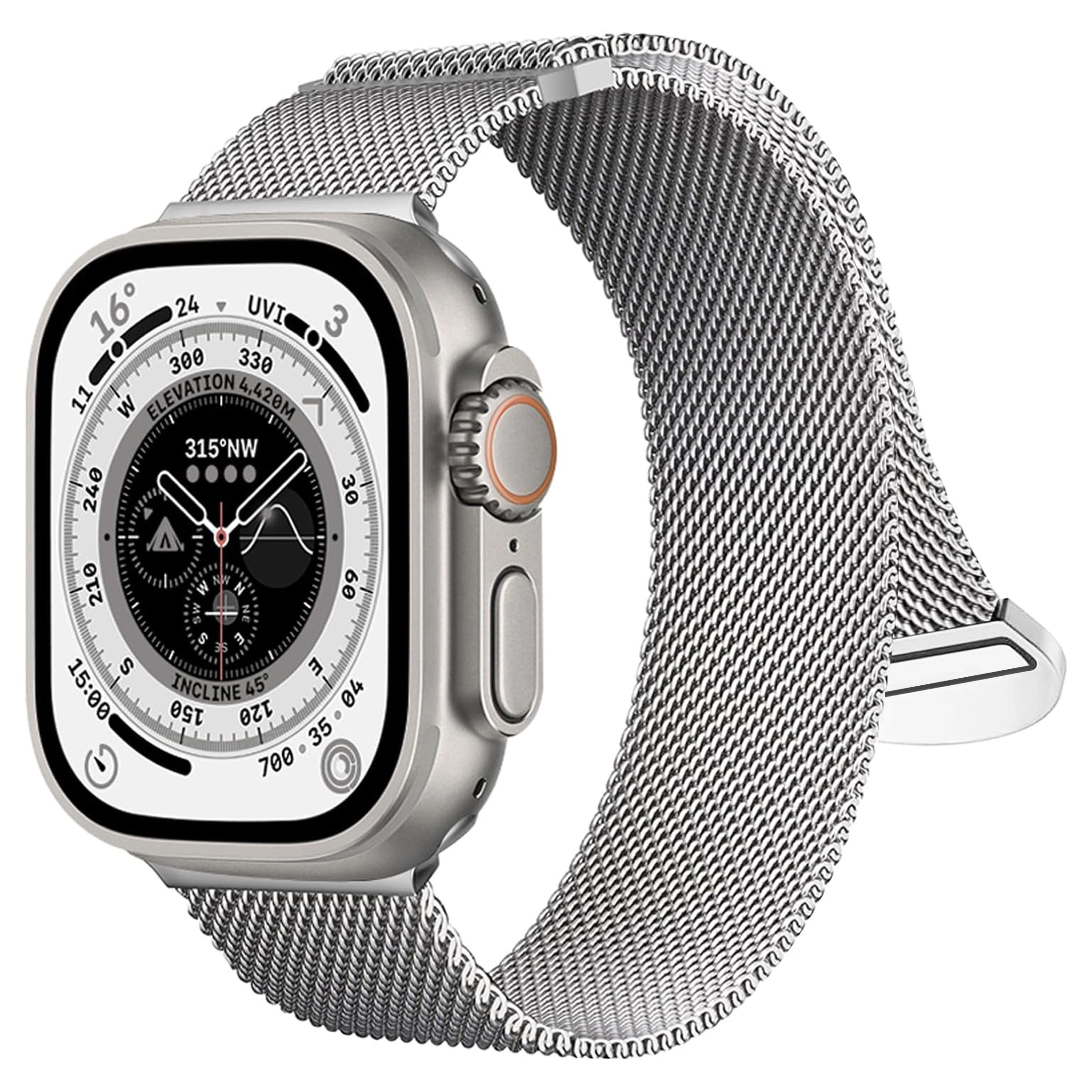 Bransoleta jest kompatybilna z modelami Apple Watch 42 mm, 44 mm, 45 mm, oraz 49 mm. Przed zakupem warto sprawdzić numer modelu na odwrocie zegarka, aby zapewnić odpowiednie dopasowanie.