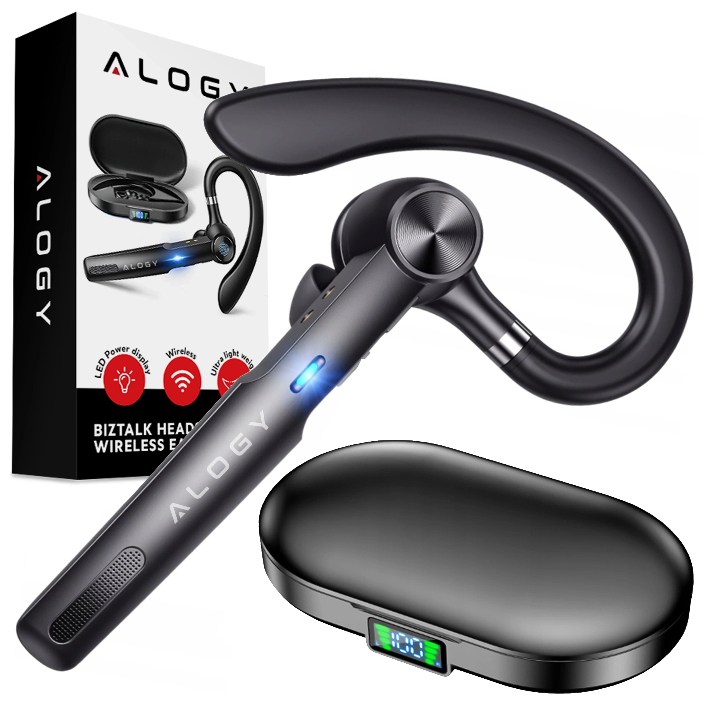Słuchawka Bluetooth dla kierowcy bezprzewodowa zestaw z etui ładującym zestaw słuchawkowy Alogy Czarna
