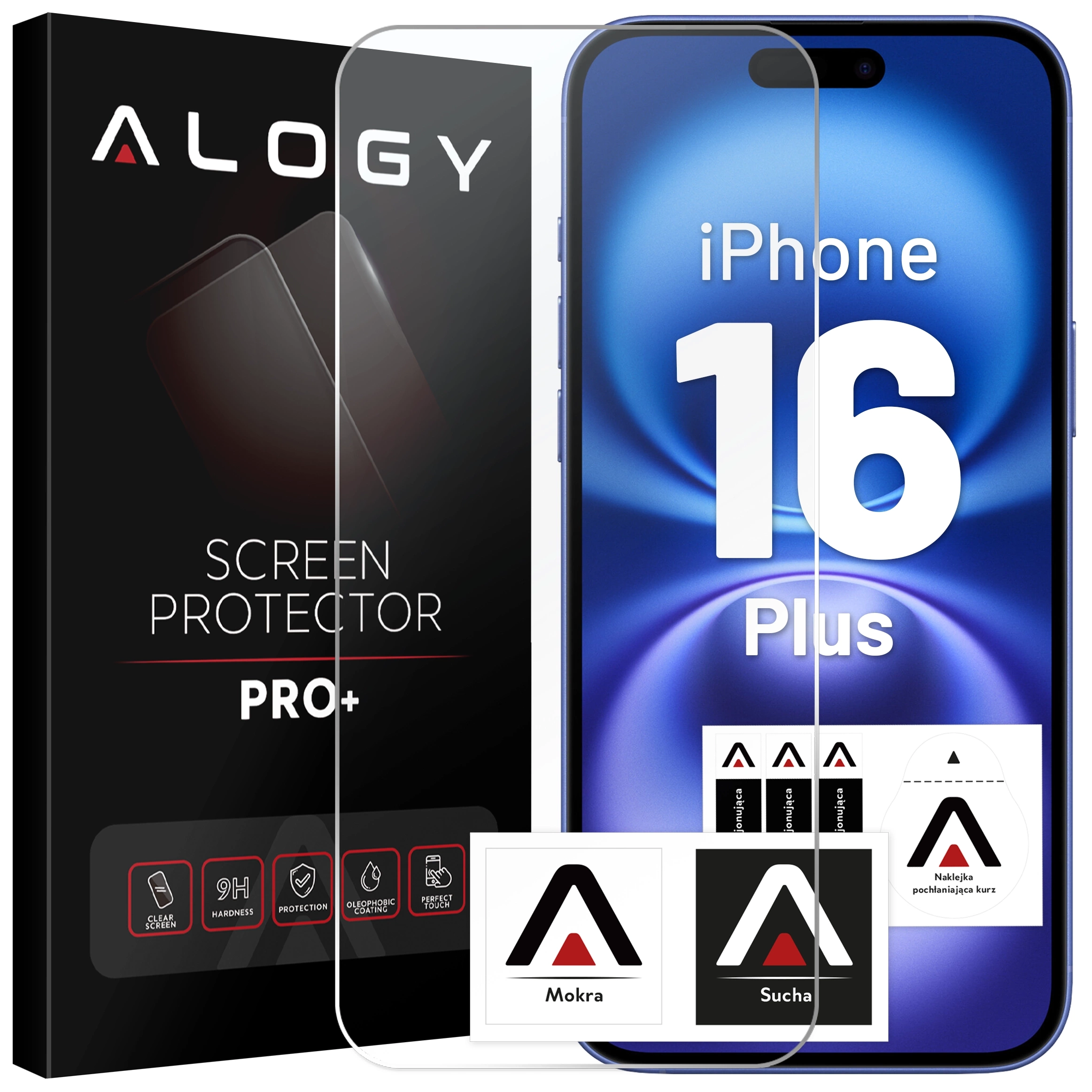 ✅ Szkło Alogy Heavy Pro+™ dedykowane na wyświetlacz telefonu Apple iPhone 16 Plus o twardości 9H to skuteczne zabezpieczenie ekranu smartfona przed: