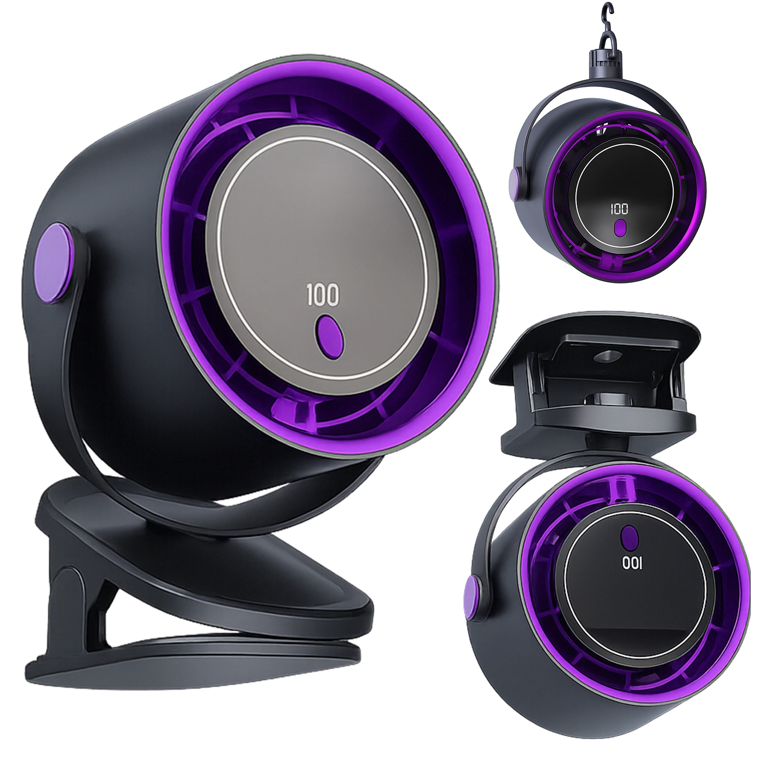 ✅ Dzięki 360° regulacji i klipsowi zamontujesz go wszędzie tam, gdzie potrzebujesz chłodnego powiewu – na wózku, biurku, a nawet powiesisz na ścianie. Ładowany przez USB-C, z akumulatorem 1200 mAh, działa tam, gdzie nie ma gniazdka – cicho, bezpiecznie i zawsze pod ręką.