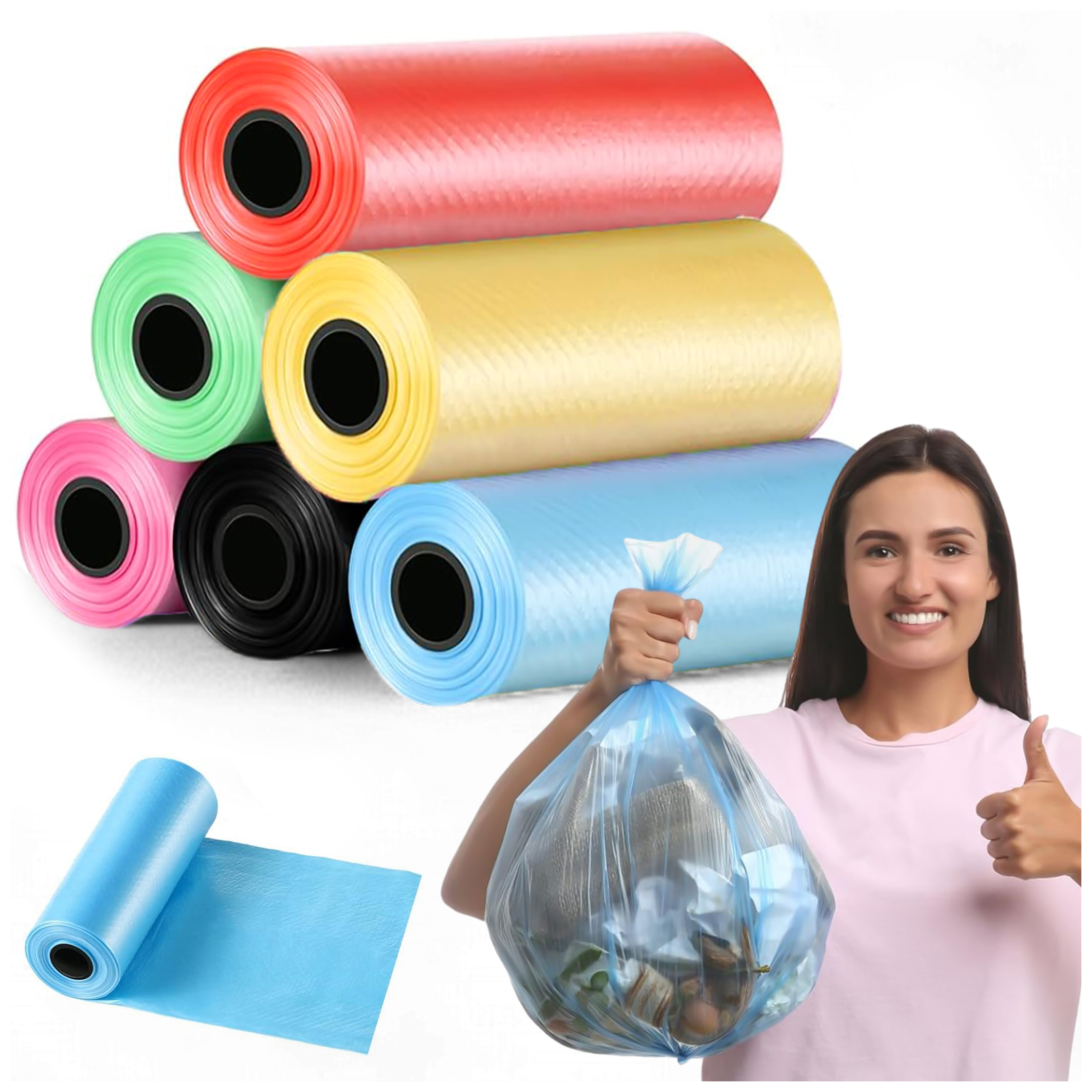 ✅ W skład zestawu wchodzi 6 rolek, z których każda rolka zawiera 15 worków w różnych, losowo wysyłanych kolorach, co wprowadza trochę radości do codziennych obowiązków.